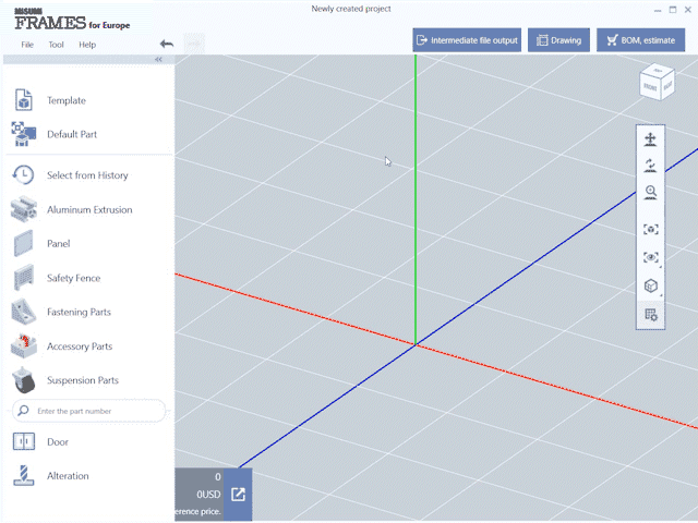 Design in FRAMES as if you were drawing a picture. Nuts and brackets or other profile connectors are placed automatically, and panels can be inserted with a single click. Easy to edit and modify. Anyone can easily design housings, devices, and aluminium extrusion structures.